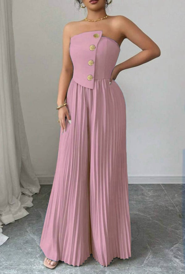 Ce haut structuré met délicatement en valeur la silhouette, agrémenté de jolis boutons décoratifs qui apportent une touche chic et originale. Le bas plissé, fluide et léger, crée un mouvement élégant à chaque pas, offrant un look à la fois tendance et sophistiqué. Parfait pour une soirée, un événement ou simplement pour affirmer ton style avec audace et féminité.