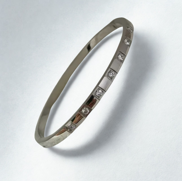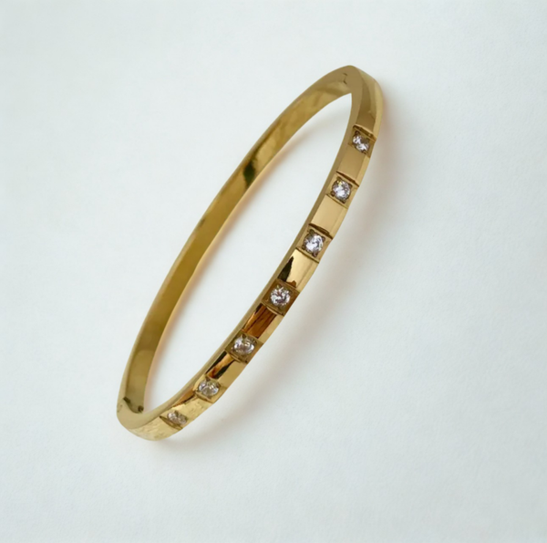 Lumineux et raffiné, notre bracelet rigide en acier inoxydable doré et argent. Parfait pour apporter une touche d’éclat à toutes vos tenues, du quotidien aux occasions spéciales.