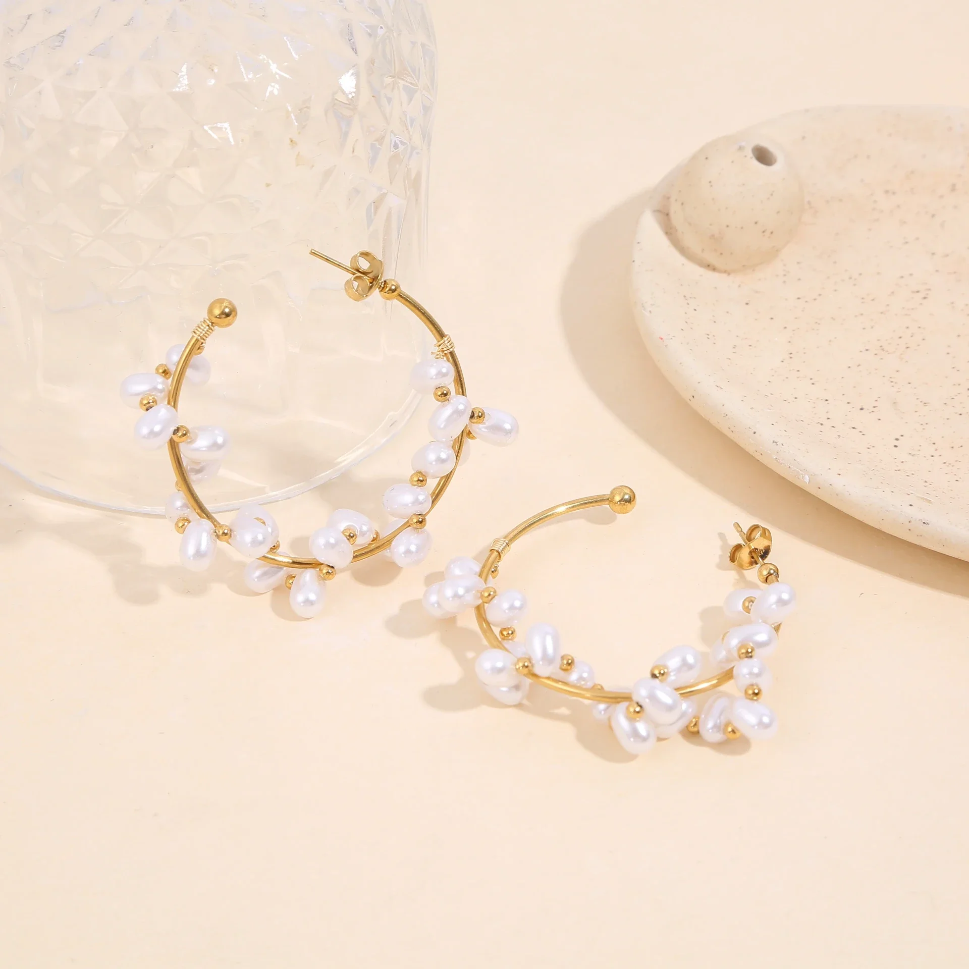 Découvrez les créoles Perles Ysia, un bijou élégant qui allie la douceur des perles blanches à l’éclat doré de l’acier inoxydable. Leur forme ouverte, ornée de petites perles irrégulières, apporte un rendu délicat et moderne qui illumine le visage.